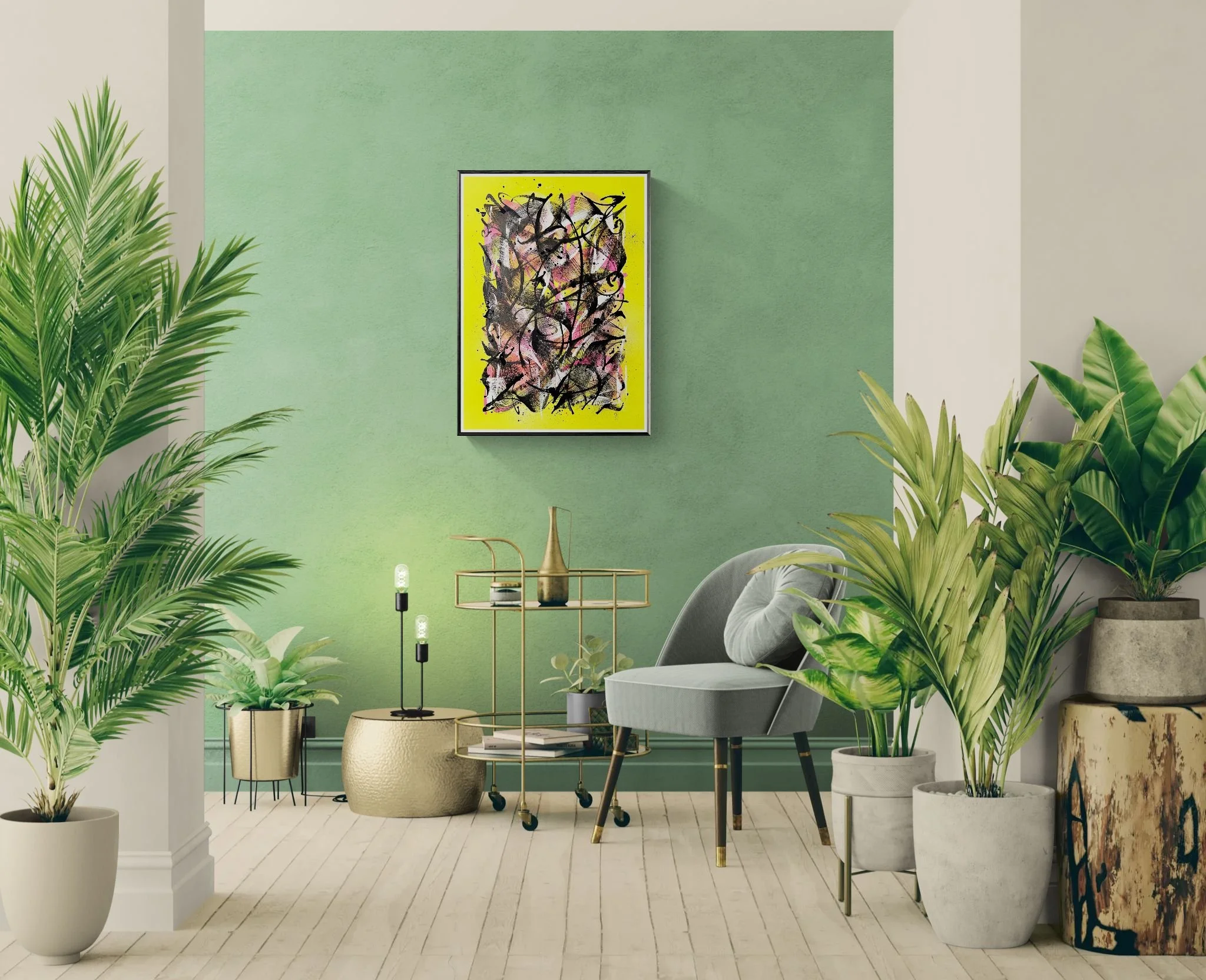 A one-of-a-kind original artwork with expressive brush strokes.