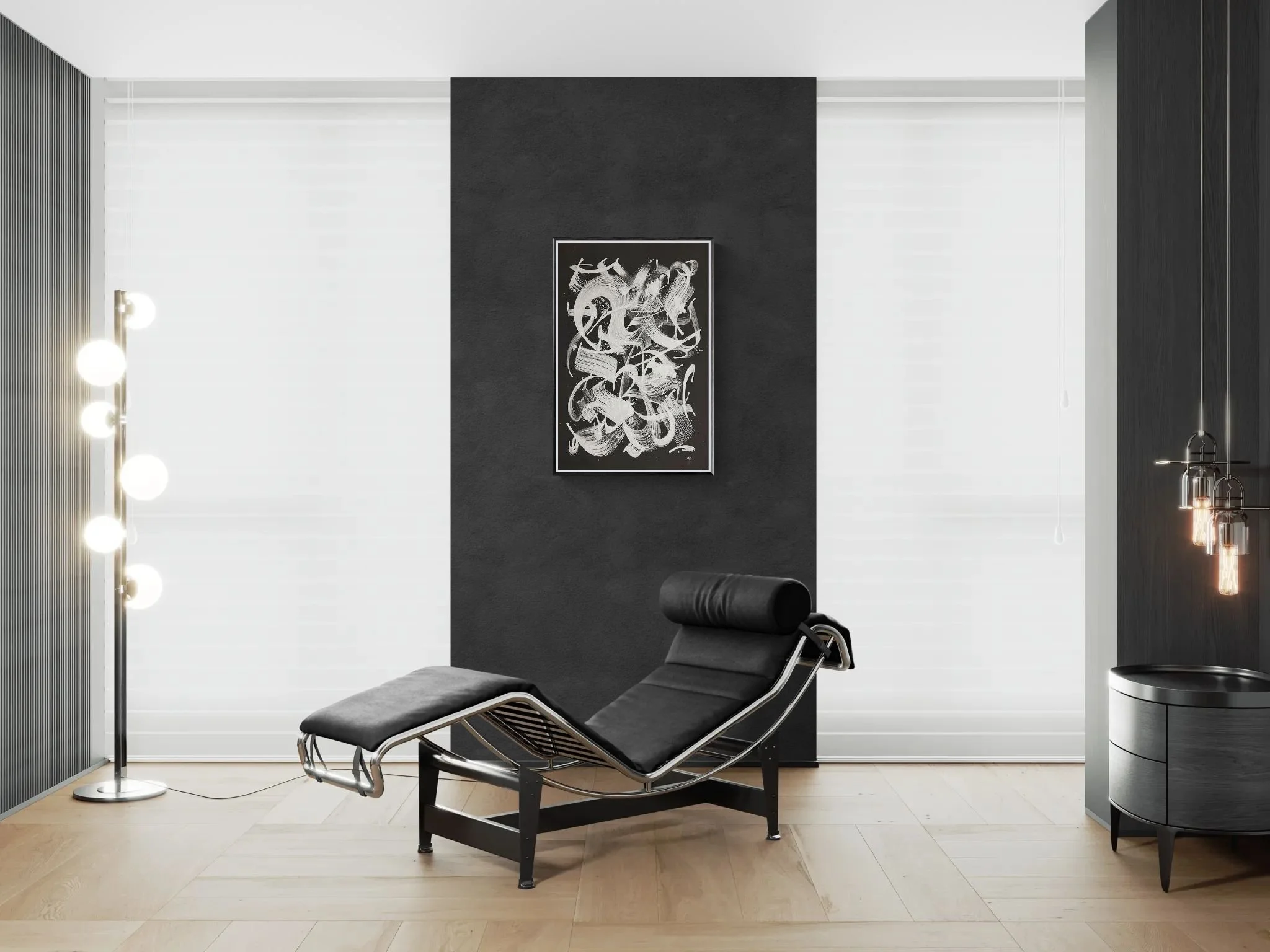 A one-of-a-kind original artwork with expressive silver brush strokes.